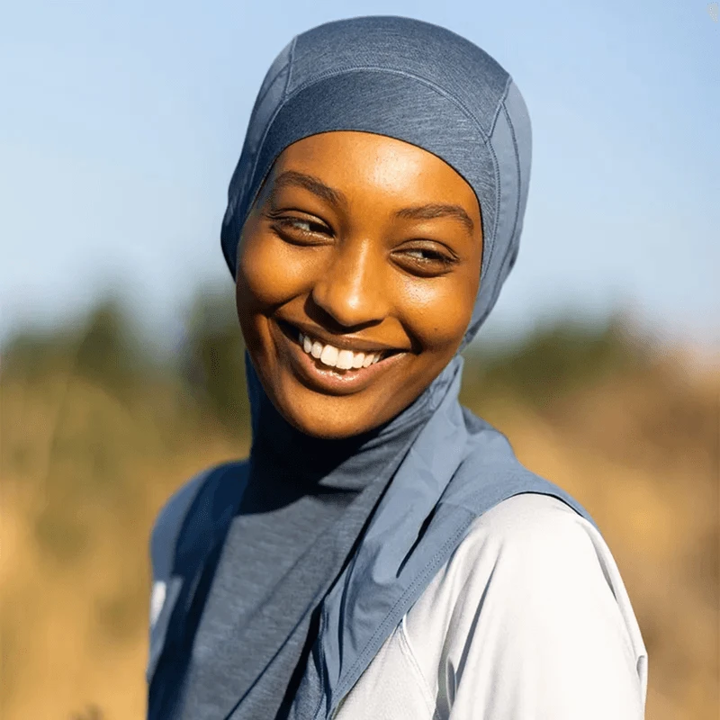 The first cooling and UPF 50+ hijab for outdoor sports with no-slip coverage, easy adjustability, helmet compatibility, and a secure fit for exercise and everyday use.