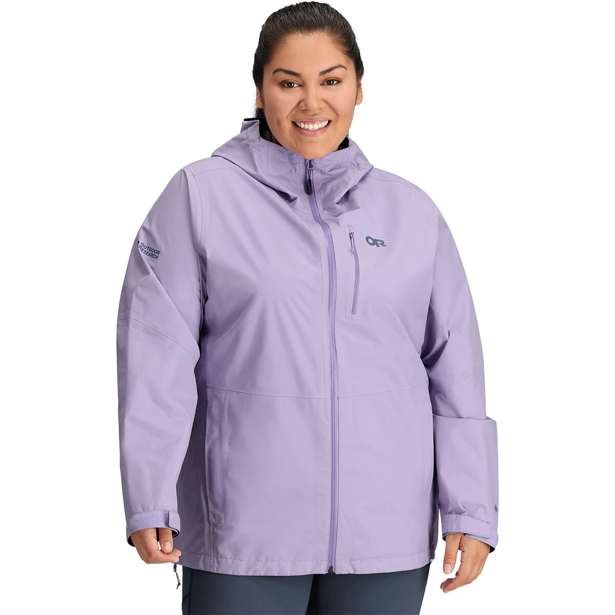 Outdoor Research’s number 1 rain jacket for women, the Aspire II Plus can handle almost everything with its excellent breathability and ventilation. Made with lightweight and packable GORE-TEX Pac Lite, this shell is durably waterproof and windproof—and extremely breathable—to keep us as comfortable as possible in wet weather. We also like the TorsoFlo vents, which unzip all the way from the hem to our biceps to dump excess heat and moisture. No wonder so many women pick it to be their casual rain jacket, wear it on soggy hikes and backpacking trips, or simply stow it in their pack as an emergency shell.