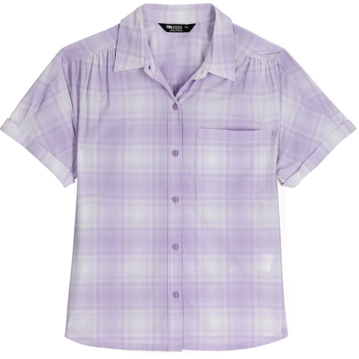 The Outdoor Research Astroman Short-Sleeve Sun Shirt uses a lightweight, stretchy fabric for optimized climbing comfort, even with its casual good looks. This button-down shirt wicks moisture, withstands abuse, and easily stretches when we’re climbing all day, while the fold-up collar and built-in UPF sun protection (colorway dependent) block harmful rays from cooking exposed skin.