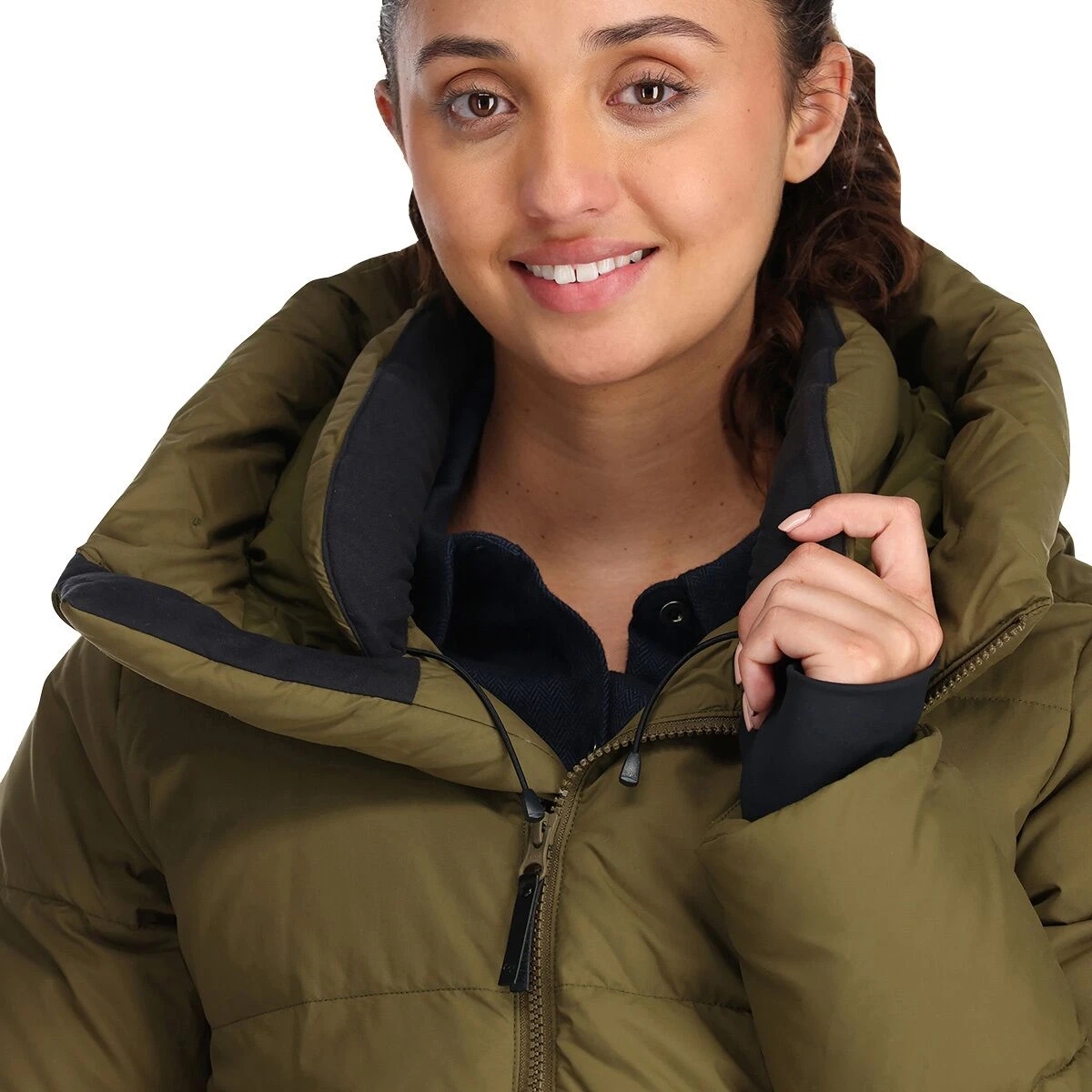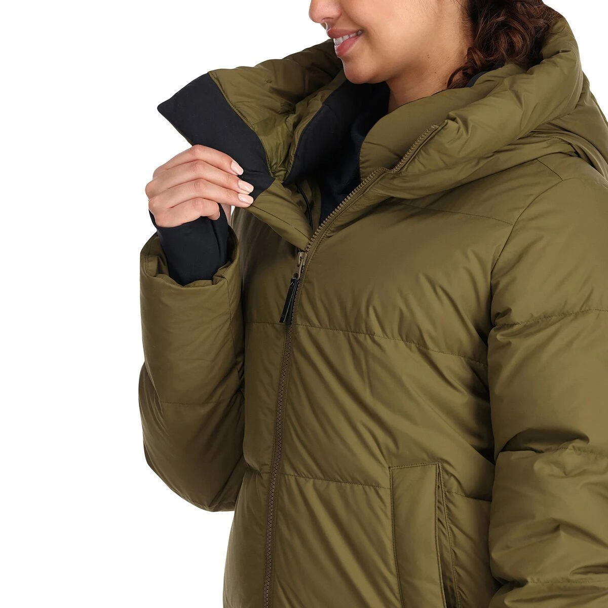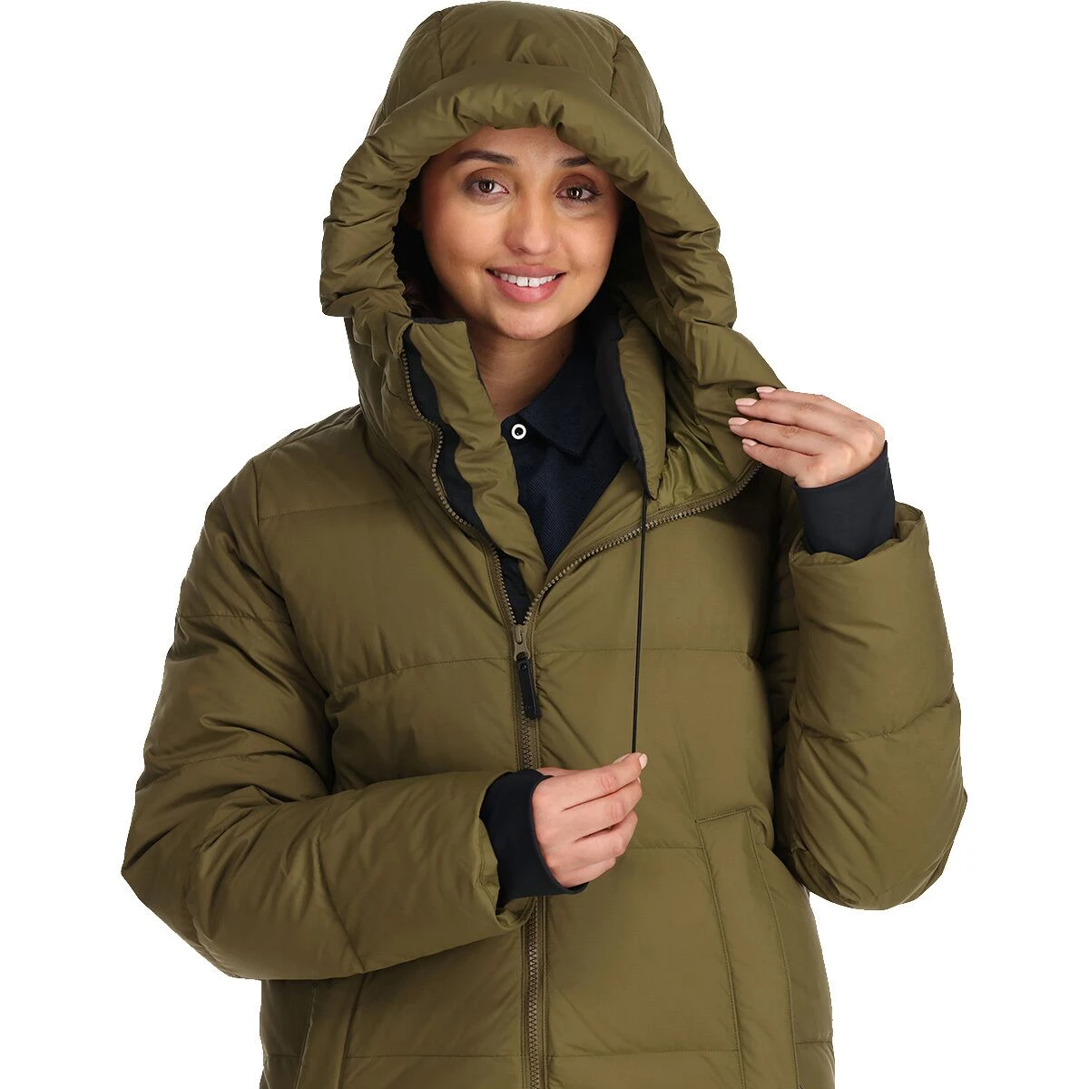 - Overstuffed hood traps in warmth around your head and face